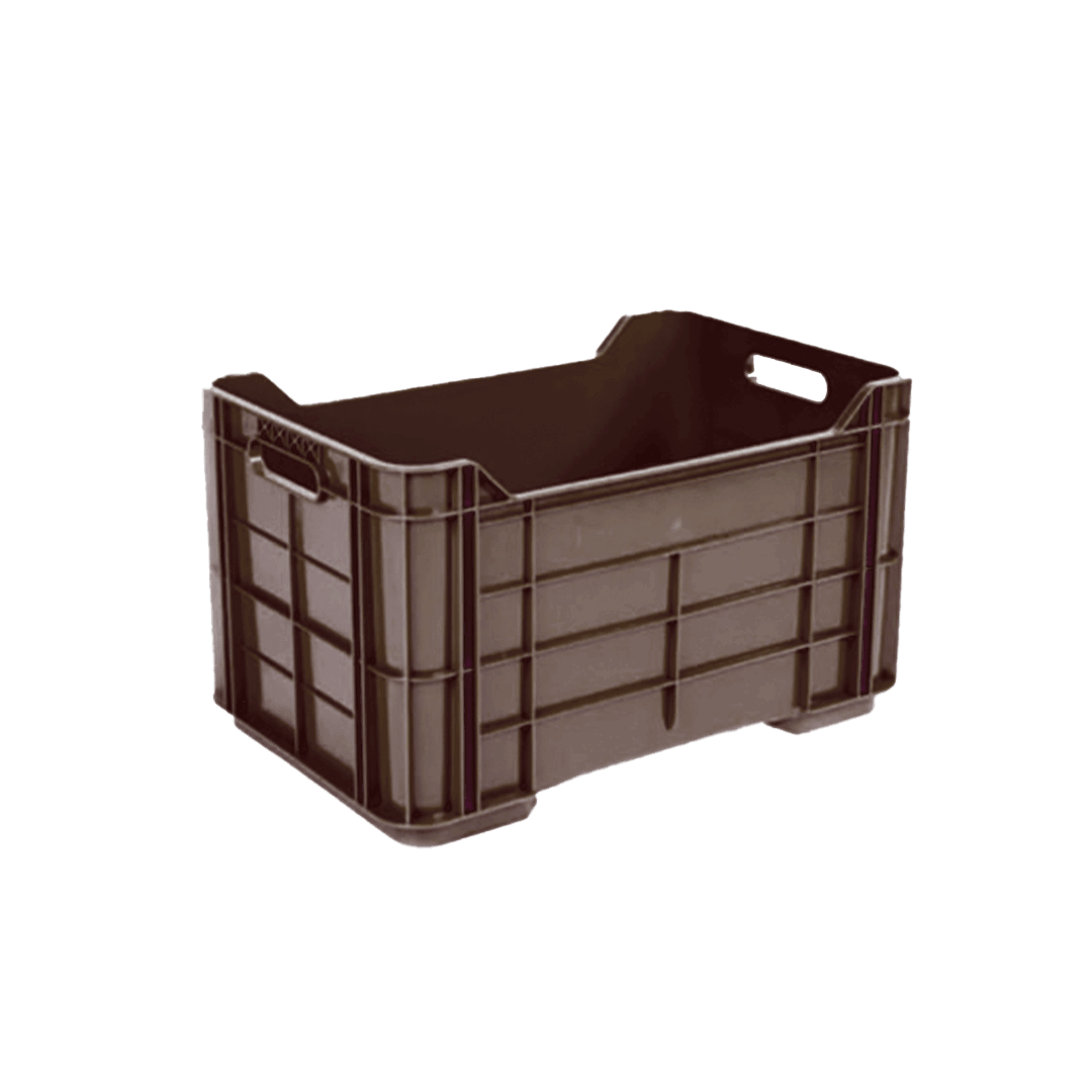 Descripción: Caja de plástico fabricada en polietileno de reproceso. Medidas: Largo: 52.4 cm. Ancho: 34.2 cm. Alto: 30.4 cm. Peso: 1.920 Kg. Capacidad de Carga: 35 Kg. Forma de estiba/empaque: Apilable. Color: Café. Sujeto a disponibilidad. En reproceso no se garantiza color.
