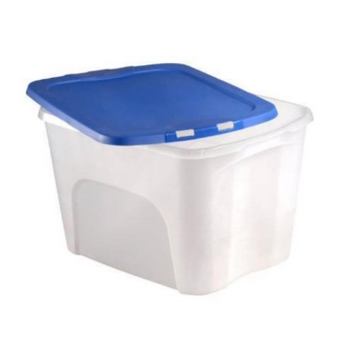 Caja organizadora de plástico fabricado en polietileno de alta densidad. Color: Transparente tapa azul. Capacidad de 23 galones (87 litros). Caja Box Transparente Ideal para guardar cosas de gran tamaño. Medida: 63 cm largo x 48 cm ancho x 39 cm alto.