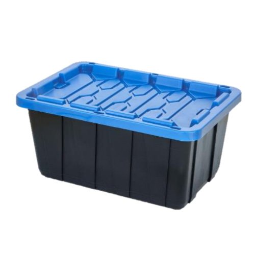 Caja de plástico fabricado en polietileno de alta densidad. Capacidad: 102 Litros. Color: Negro con tapa azul. Caja con tapa. Caja Organizadora de forma rectangular súper resistente. Ideal para guardar cosas de gran tamaño. medidas: 77.2 × 51.8 × 35.5 cm.
