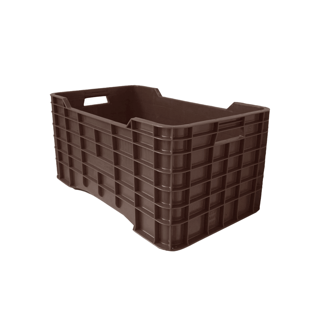 Descripción: Material: Polietileno de reproceso. Medidas: Largo: 73.0 cm. Ancho: 42.5 cm. Alto: 35.0 cm. Peso 4.250 Kg. Capacidad: 75 Kg. Forma de estiba/empaque: Apilable. Condiciones de estiba: 7 piezas con producto. Color: Café. Sujeto a disponibilidad. En reproceso no se garantiza color.