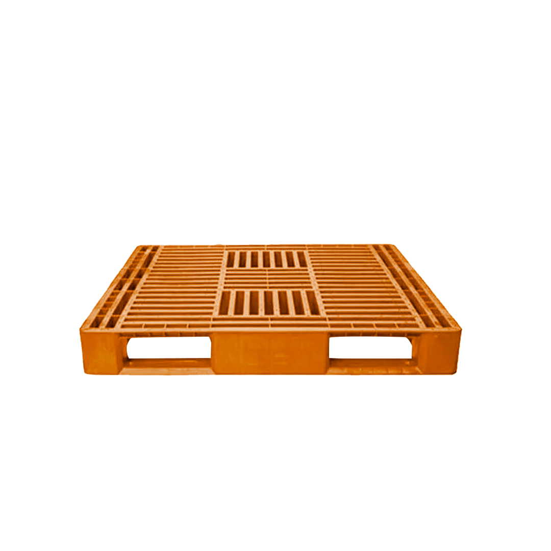 Descripción: Tarima de plástico fabricada en polietileno alta densidad virgen. Medidas: Largo: 124.0 cm. Ancho: 103.0 cm. Alto: 15.5 cm. Carga Dinámica: 1,300 Kg. Carga Estática: 8,000 Kg. Racks: 500 Kg. Peso: 18 Kg. Forma de estiba: Apilable. Condiciones de estiba 15 piezas sin producto. Color: Naranja.